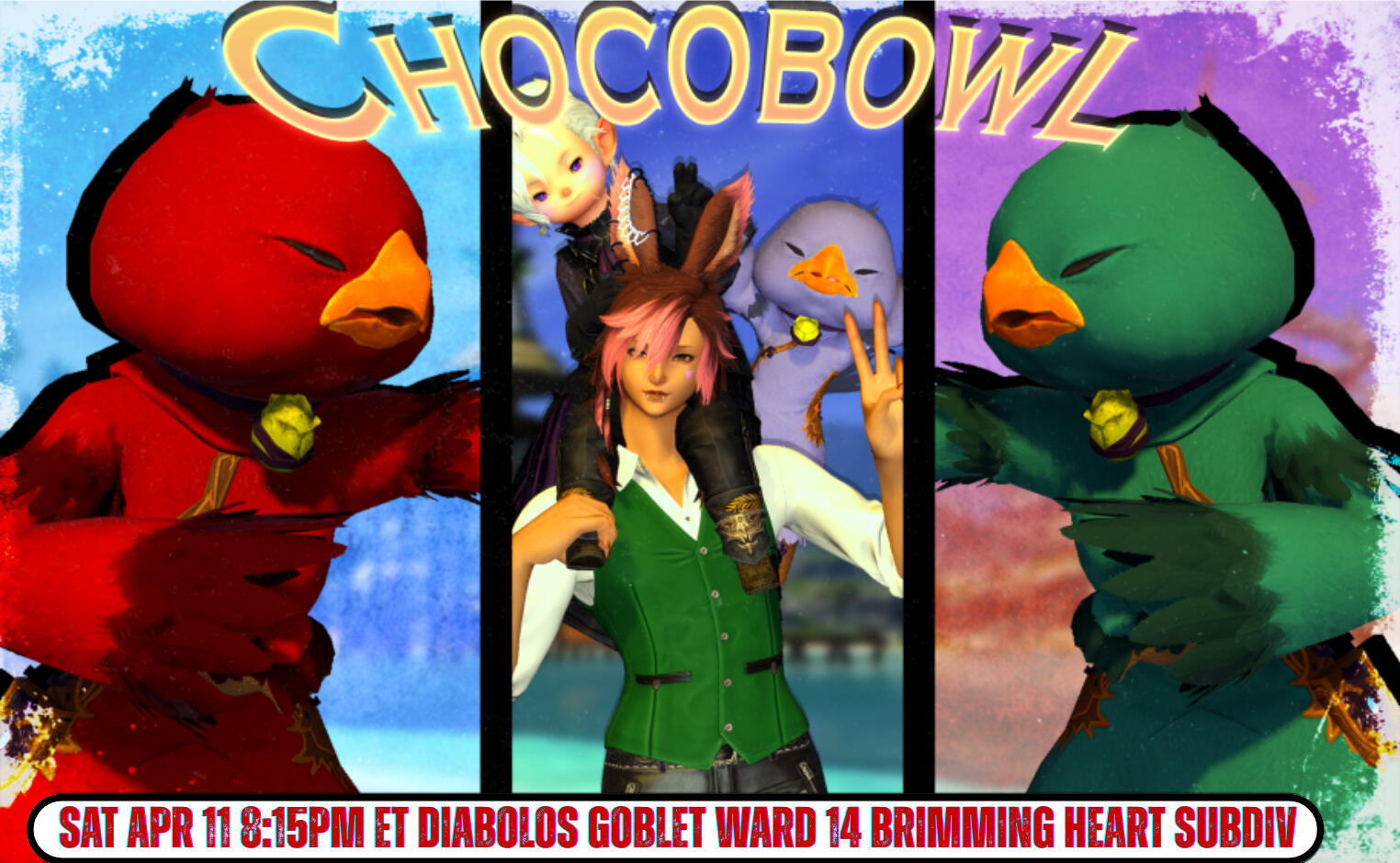 | 8:15 | ★ Chocobowl Begins! | The Brimming Heart, W14 Subd. | Here |